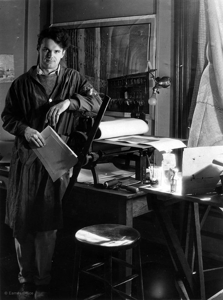 Charles Ormand Eames Jr., a nearly-licensed architect born in St. Louis in 1907, and Bearnice Alexandra “Ray” Kaiser, an abstract painter born in Sacramento in 1912, are cemented into the canon of 20th-century design. Since uniting in 1940, these partners in life and work have been internationally recognized at the forefront of the design, architecture, filmmaking, and furniture communities.
